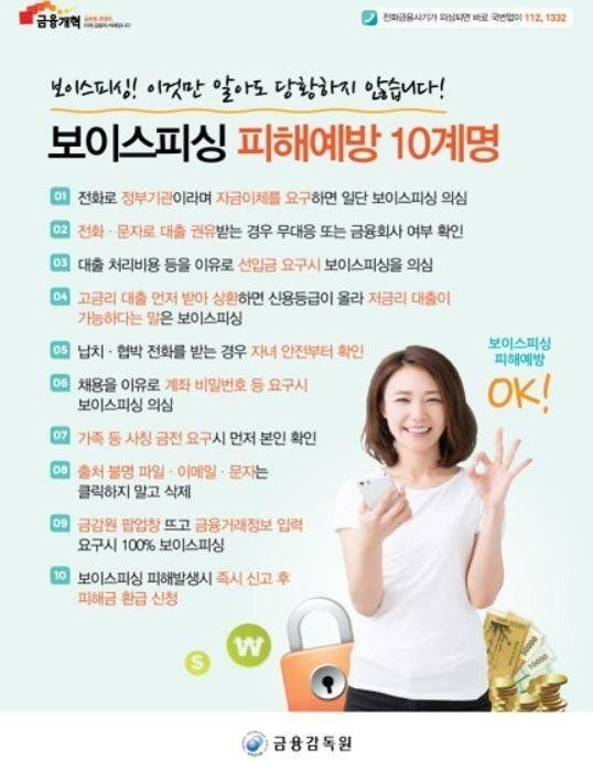 서민의 지갑을 노리는 범죄자는 강력한 법정 최고 형으로 다스려 엄벌해야 한다. 사정당국의 특단의 대책이 필요하다.그래야 억울한 국민이 없어진다. 출처 불명의 전화는 받지 않는 것이 최고의 예방방법이다.
