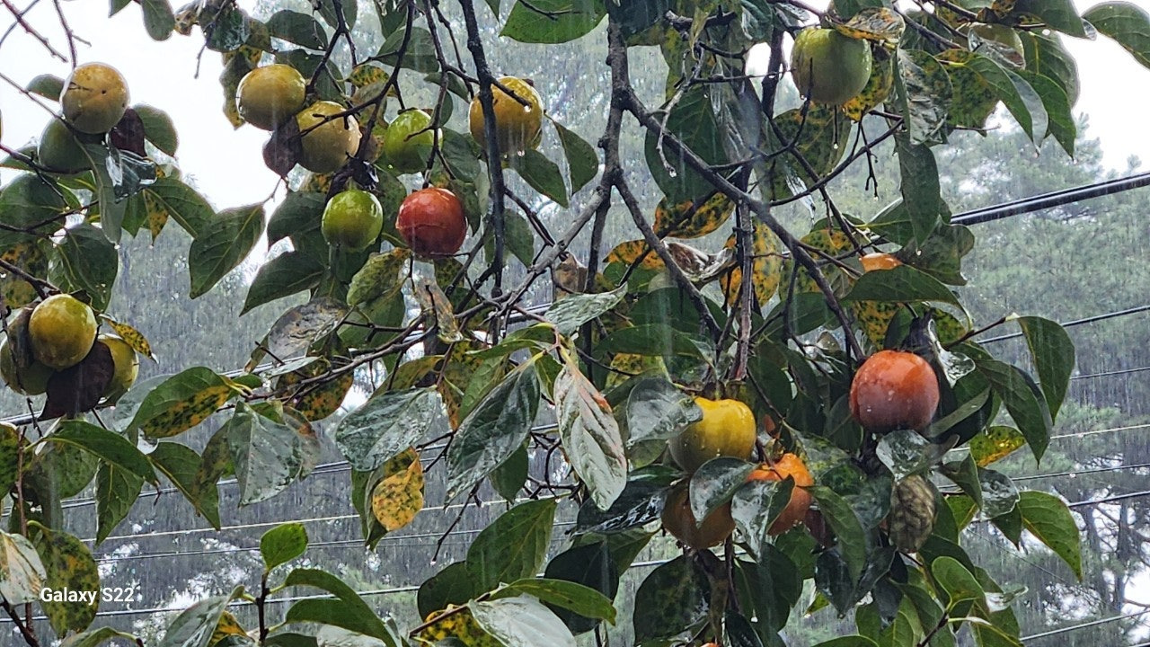 잔잔한 저수지 둘레길에 함안문인들의 시가 둘레길에 걸려 있었다. 알고 있는 눈에 익은 이상규 시인의 시를 읽어 보았다. 엇그제 줄곧 비가 내려 저수지 물이 가득했다. 숲에서 들려오는 새들의 소리와 바람소리를 들으며 저수지를 가로 지르는 출렁다리를 건넜다. 나무데크길을 따라 주차장까지 걸었는데 몸도 마음도 가벼워졌다. 한절골 오두막마을 들판에 들어서니 화단에는 국화가 피고 있었고 주렁주렁 감이 익어가며 그림을 그려주고 있었다. 조금 있으면 함안특산품 곳감을 깍는 진풍경이 마을 곳곳에서 벌어진다. 오두막 70년 된 반단감나무에도 감이 홍시가 되어 떨어지고 있었다. 홍시는 아이들 군것질 거리도 안되어 곳감으로 만들지 않으면 떨어져 자연으로 돌아가고 있다. 오두막 감나무 홍시를 먹어도 끝이 없다.