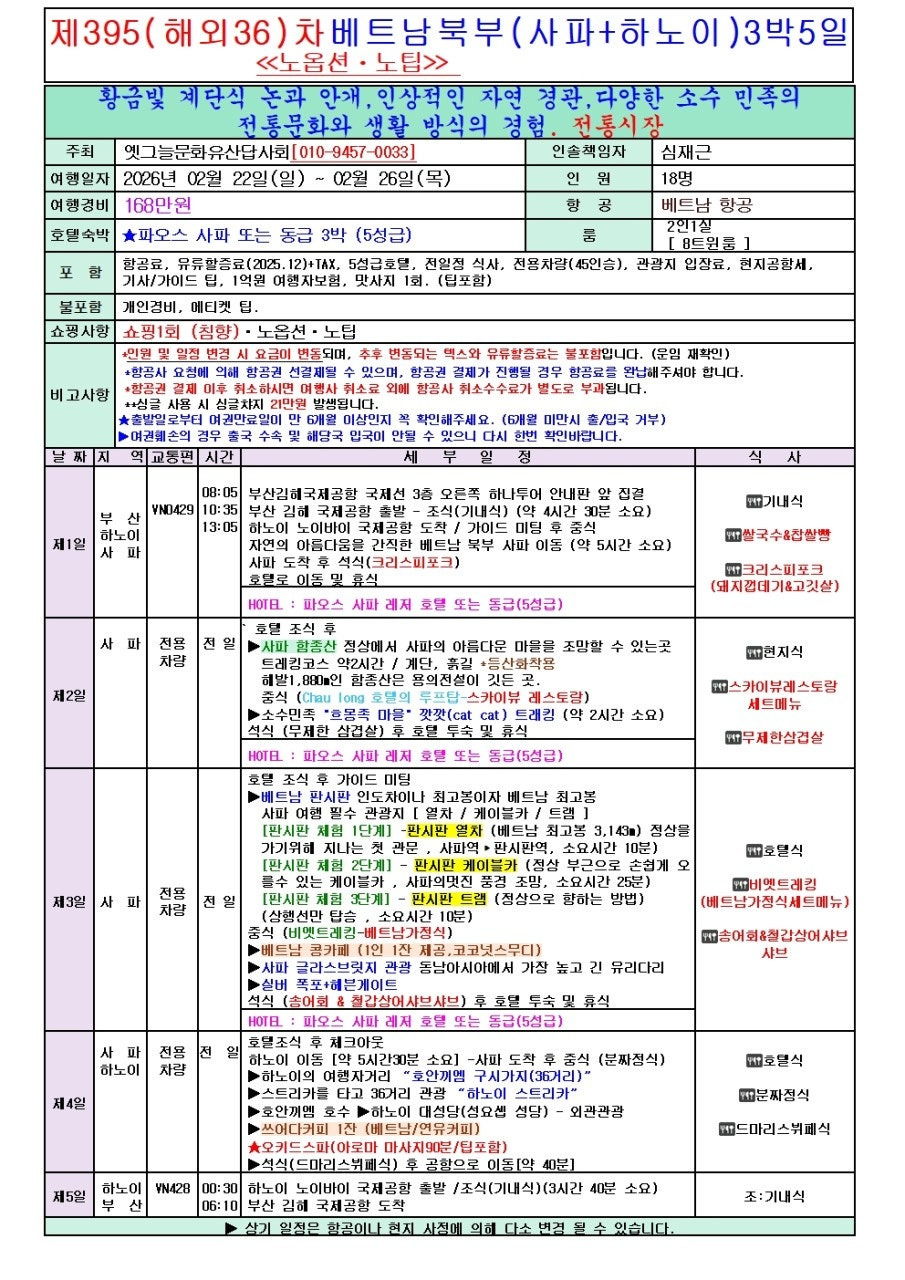 20251213#제395차(해외36차)베트남 북부(사파+하노이)[3박5일]기행 안내