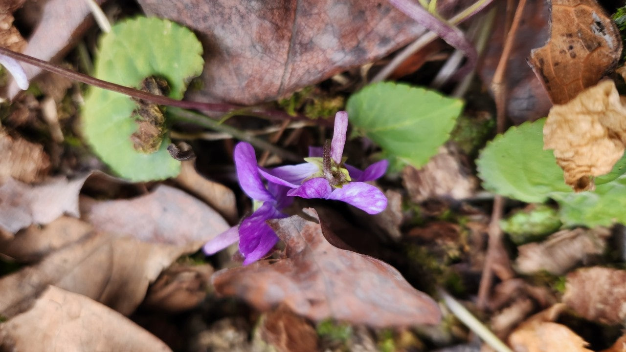 한절골 오두막 감나무 아래 핀 보라색 외제비꽃